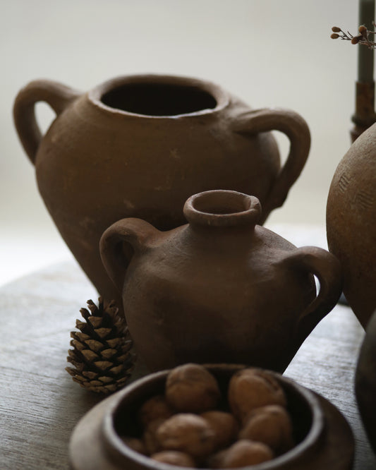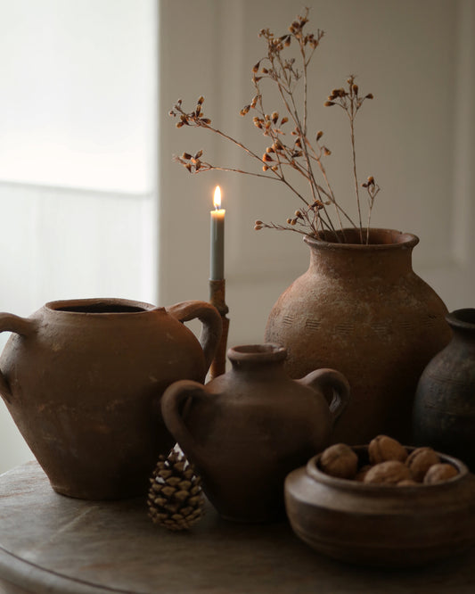 Antique terracotta vases, vessels, + primitive wooden homewares. Each piece has been hand picked to be cherished + is a celebration of its heritage with charming character + qualities that transcend interior trends.